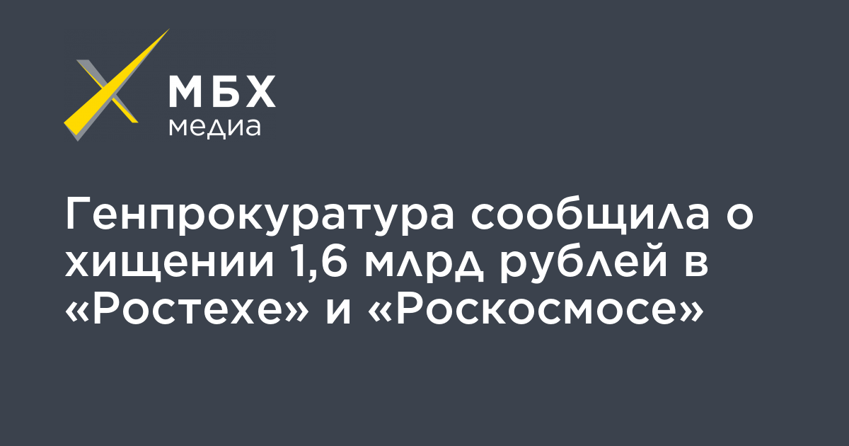 Генпрокуратура сообщила о хищении 1,6 млрд рублей в «Ростехе» и «Роскосмосе»