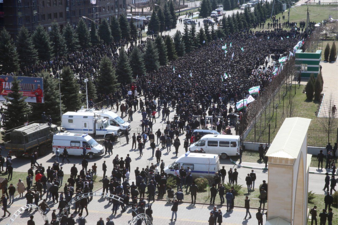 Another round of protests took place in the second half of March when a new law on referenda in the republic passed its first reading in the People’s Assembly. Unlike Ingushetia’s previous law on referenda, this bill does not include a clause stating that referenda must be called to approve changes concerning the official status of the republic, its name, its division or union with other Russian federal subjects, or its borders and territories. A vice speaker of the People’s Assembly, Askhab Sukiev, explained at the time that the timing of the vote was coincidental and stemmed from a technical error, but few believed him.