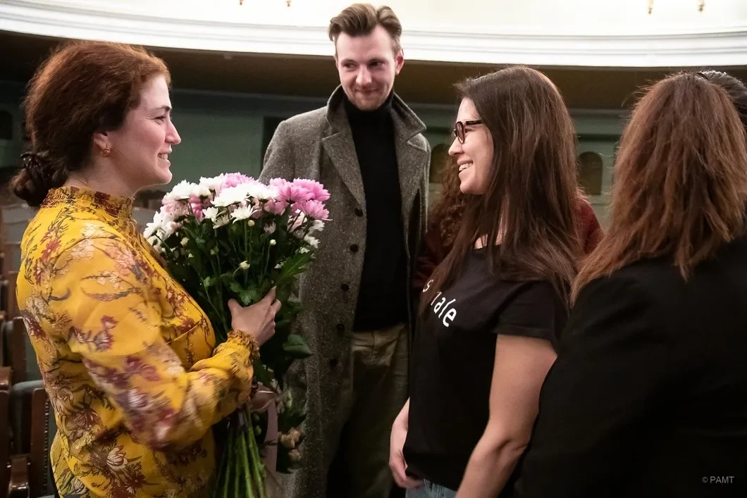 Софья Апфельбаум, директор РАМТа, во вторник пришла на работу. Задолго до одиннадцати утра, на которые Алексей Бородин назначил сбор труппы. На столе в ее кабинете — розы, сирень, тюльпаны. Во вторник в театре выходной, но ведь, как сказал его художественный руководитель, «событие, которого мы так ждали, свершилось», и пришли все. Софья Михайловна еще в приемной радостно повторяла: «Ой, а я не готова!», но по дороге к большому залу озабоченно сказала: «А где тут была протечка?»