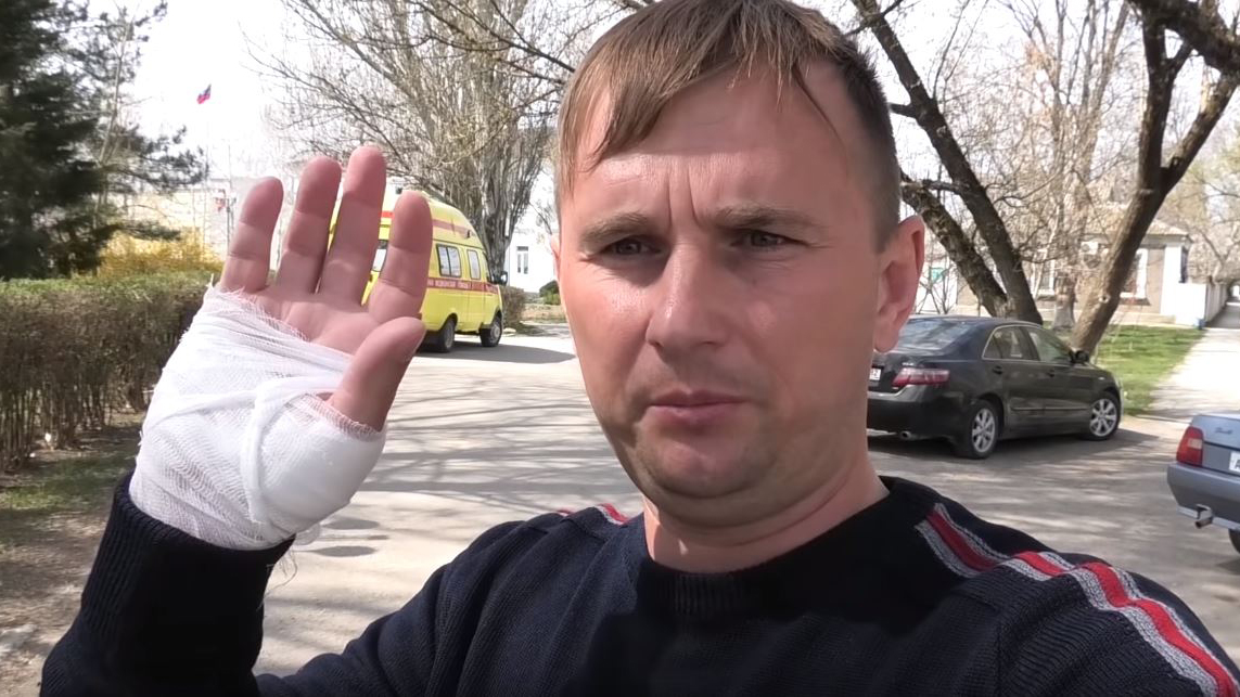 После посещения приемной главы райсовета Александр Тарасенко показал на видео забинтованную кисть руки и рассказал, что с ним произошло.
