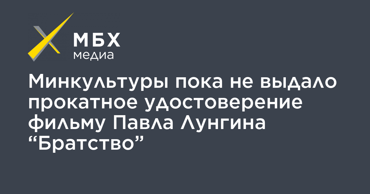 Министерство культуры пока не выдало прокатное удостоверение фильму Павла Лунгина «Братство». Об этом сообщает ТАСС со ссылкой на заместителя министра культуры Павла Степанова.