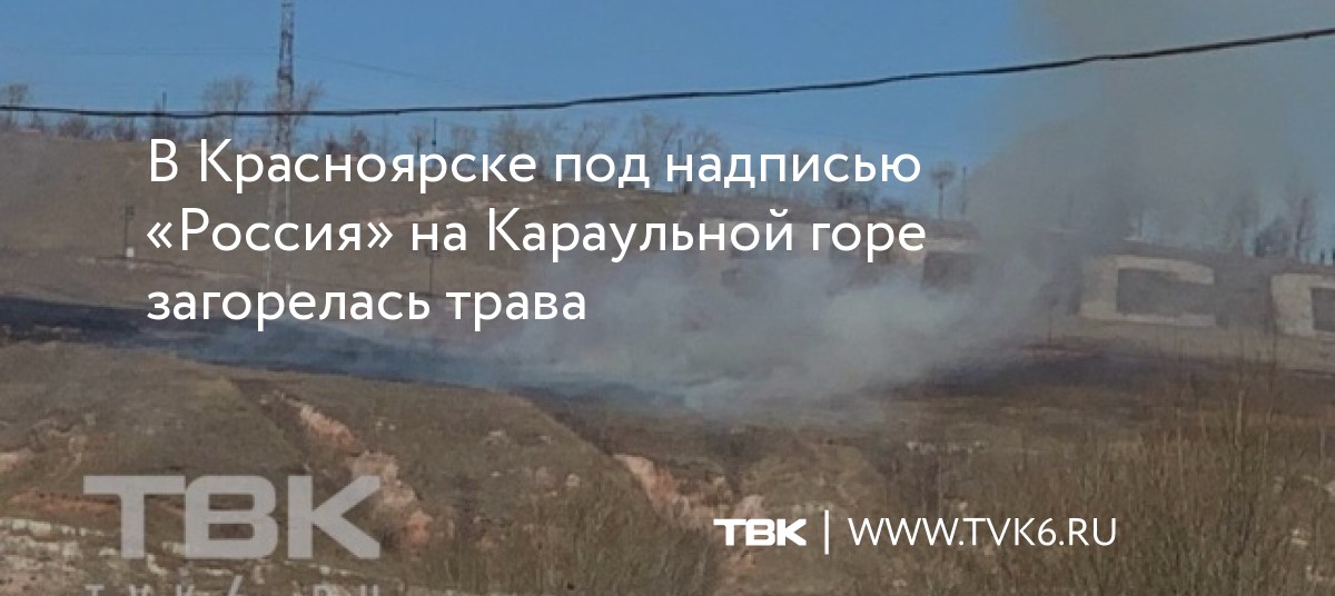 В Красноярске под надписью «Россия» на Караульной горе загорелась трава