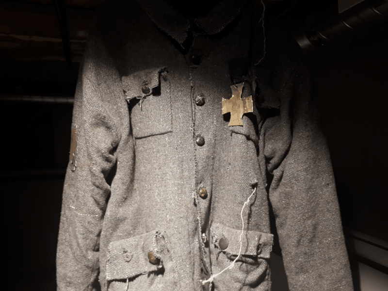 Вторая камера (Zimmer 2) раскрывает идею вымышленной археологии. Жутковатая ржавая маска («противочумная») и прочие железки, включая лопатку для пирога, которые можно было выкопать во дворе в пятилетнем возрасте и беречь, аки сокровища. Примерно так и есть: нам поясняют, что автор сего Грехт раньше был «копателем» и использовал в работе свои «сокровища». Над ними висят истлевшая куртка со знаком вроде Железного креста и пиджак из папье-маше с рукавом-щупальцем. Пиджак зловеще покачивается, щупальце осматривает камеру, и наблюдать за ним лучше из пухлого старого кресла. Продавленное, трухлявое и уютное, оно легко раскручивается, можно сесть спиной к входу и, дождавшись шагов, эффектно развернуться. В общем, чувствуешь себя засевшим в бункере злодеем из бондианы.