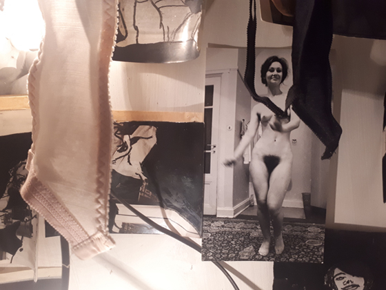 © А. Семенович Kunsthalle nummer sieben. Детали экспозиции Из кресла же открывается вид на шкафчик с коллекцией женского нижнего белья середины прошлого века. То есть, простите, доапокалиптической эпохи. Это собрание Петра Швецова, и старые эротические фотографии и чулки будто со съемочной площадки «Головы в облаках» или «Малены» утверждают намеченную немецко-берлинскую тему. Берлинскую — потому что подвал подается как пространство, родственное немецкому андеграунду, и тут есть ментальный раздражитель (тот самый Железный крест). Не явная провокация, но некая ирония над бесконечными дублями официальной культуры на съемочной площадке псевдоистории Второй мировой.