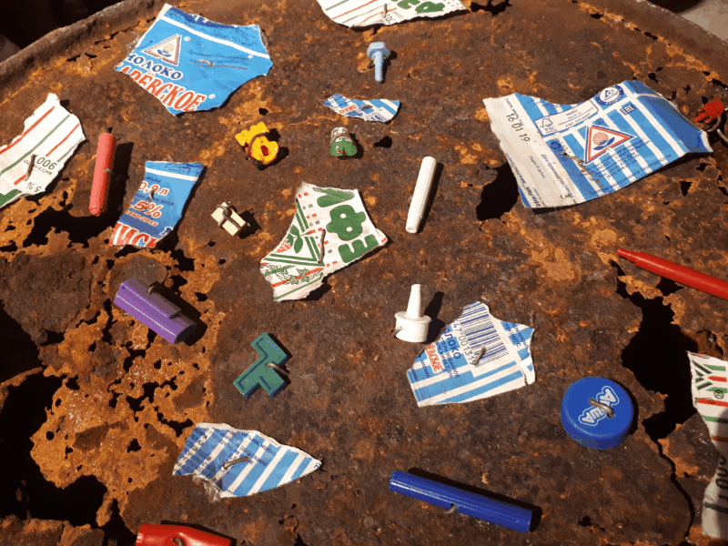 В следующей камере (Zimmer 3) вас ждут остатки некоего помоечного пиршества: клочки от упаковок молока, консервные банки, бочки. Татьяна поясняет, что художник Иван Чемакин и его большая семья всем домом ратуют за раздельный сбор мусора. Так что считывать экспозицию можно по-разному — как анонс неизбежного апокалипсиса в случае, если люди не бросят засирать планету, или как ироничное замечание на тему бессмысленности усилий: на руинах цивилизации будет все равно, в какой контейнер вы выбрасывали батарейки. Так или иначе, камера Чемакина — самая насыщенная предметно, она похожа на декорации какого-нибудь постапокалиптического моноспектакля.