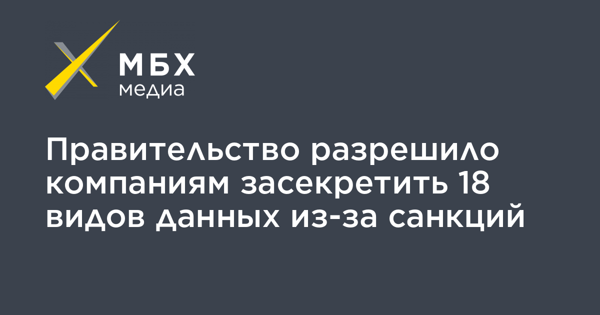 Правительство России разрешило компаниям засекретить 18 видов данных, чтобы защитить себя от санкций Европы и США, об этом сообщает РБК со ссылкой на постановление правительства от 4 апреля.