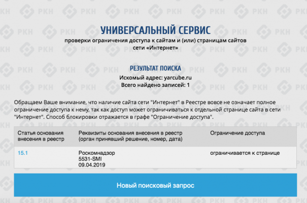 Роскомнадзор внес ярославское новостное издание «Яркуб» в реестр сайтов, доступ к которым ограничен. Об этом сообщается в телеграм-канале «Яркуба».