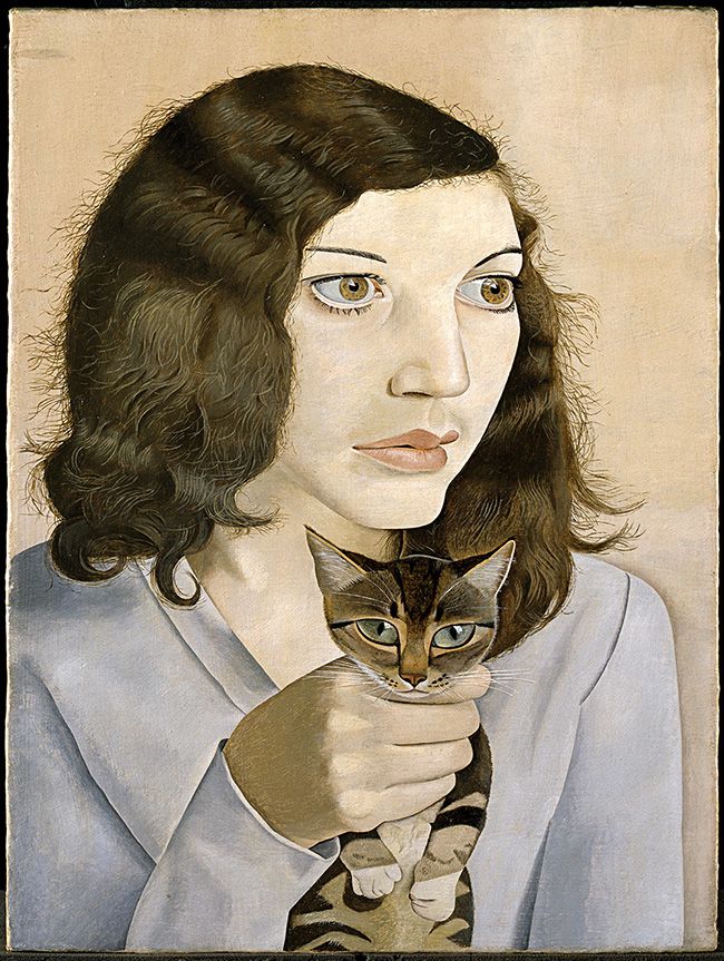 Итак, девушка с котёнком. Это Кейтлин Гарман, её называли «Китти». И поэтому это не просто котёночек у неё в руках — это её альтер эго, которое она своей костлявой рукой держит за горло. И она так крепко держит, что практически душит эту кису. У них у обеих огромные глаза. И если киса этими огромными глазами смотрит на нас, то Кэти — в сторону. И во взгляде её читается какой-то страх. Или недоверие Люсьену, может быть. Не знаю, но есть это ощущение дискомфорта, о котором я вам говорила в начале, но вот здесь оно какое-то очень личное. Женщинам часто приходится душить своего внутреннего котёнка, своё внутреннее «Я», чтобы жить рядом с творческим мужчиной. Она ведь, между прочим, тоже была художницей. Ключевое слово — «была».