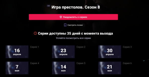2) «Для ценителей» — нет промо-периода, но подписка со скидкой (обычная цена 749 рублей в месяц). - С каким отставанием будут выходить серии. Через несколько часов после премьеры.