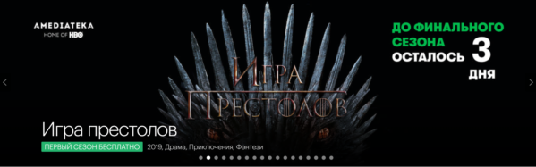 - Что входит в подписку. «Игра престолов» входит в основную подписку на сервис, то есть помимо неё пользователь получает еще около 300 сериалов, а также художественные и документальные фильмы, и так далее. Прямо сейчас на сервисе выходят премьеры новых сезонов таких тайтлов, как «Убивая Еву», «Миллиарды», «Вице-президент». 25 апреля выйдет последний эпизод одной из главных премьер этого года от Би-би-си – драмы «МатьОтецСын» с Ричардом Гиром. Важное уточнение: только у «Амедиатеки» и её партнёров-операторов можно смотреть премьерные серии первым — одновременно с США – по понедельникам в 4 утра, а также пересматривать все сезоны в любое время.