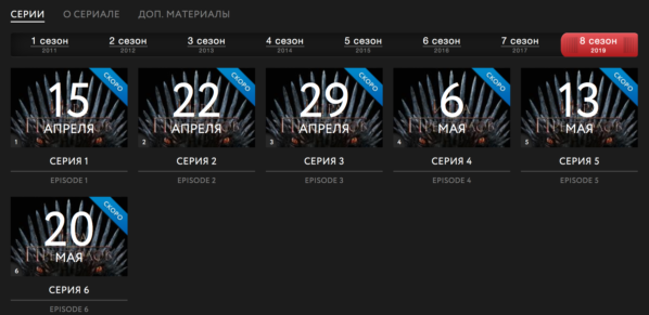 Дополнительные плюсы. В Okko можно бесплатно (по подписке) посмотреть все предыдущие сезоны, в отличие от некоторых других онлайн-сервисов. Также в социальных сетях Okko идет голосование за обладателя Железного Трона Вестероса, результаты интерактивные — каждый день на обложках сообществ появляется количество баллов у каждого героя. Голосуют подписчики сообщества, можно попробовать любое количество раз. Голосуя, подписчик участвует в розыгрыше триала, можно выиграть бесплатный период до 14 дней, количество попыток не ограничено.