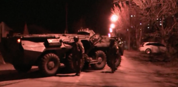 После начала операции очевидцы опубликовали несколько роликов, на которых слышны выстрелы, и опубликовали фотографии с военной техникой и ОМОНом на улицах. В районе Маяк загорелся один из частных домов. Пожарные уже потушили открытый огонь.