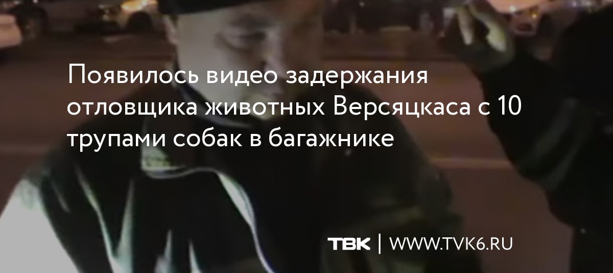 В сети появилось видео задержания отловщика животных Виктора Версяцкаса. Зоозащитники совместно с ГИБДД Хакасии задержали бывшего подрядчика по отлову животных в Красноярске. При нем обнаружили охотничье снаряжение, а в багажнике одной из машин было сложено 10 трупов собак.