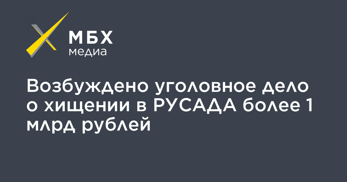 Возбуждено уголовное дело о хищении в РУСАДА более 1 млрд рублей