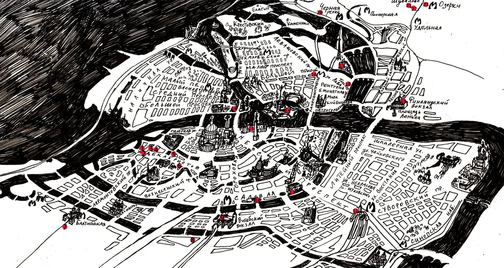 Всего мероприятия фестиваля пройдут в 23 петербургских местах. Они отмечены на карте фестиваля.