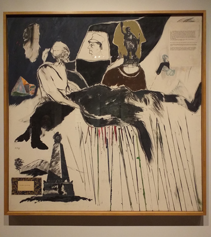 После субъективности художественных миров первого зала довольно отрезвляюще действуют работы Рональда Брукса Китая, хотя их довольно сложно смотреть в узком коридоре. Его первые постмодернистские попытки коллажно объединить фигуратив, абстракцию, фотографию, письменную документацию и плакатную эстетику для того, чтобы создать современные исторические полотна («Исаак Бабель с Буденным» (1962), «Убийство Розы Люксембург» (1960) и др.), удивляют своей экзистенциальной драматичностью и одновременно наивностью. Когда глядишь на эти работы, близкие к поп-арту, становится вдвойне печально, что на выставку не привезли хотя бы один портрет кисти Хокни.