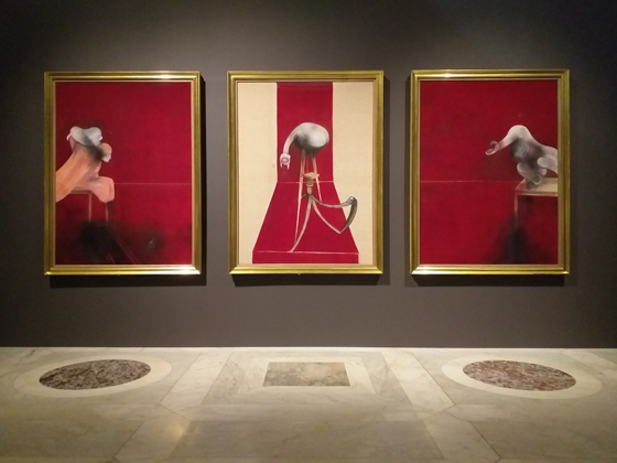Итак, в Москву наконец-то привезли лондонскую живопись 1930-х — 1990-х. Ждать пришлось долго, так что британское искусство предшествующих периодов было представлено московским зрителям почти исчерпывающе. В 2008 году в ГМИИ прошла ретроспектива Уильяма Тернера, в 2011-м — выставка «Уильям Блейк и британские визионеры». В 2013-м в Пушкинский привезли прерафаэлитов («Прерафаэлиты: викторианский авангард»), а в Третьяковской галерее в 2016-м прошла выставка работ из лондонской Национальной портретной галереи «От Елизаветы до Виктории: портрет XVI—XIX веков». Некоторые из этих выставок осторожно затронули XX век: например, рядом с Блейком обобщенно, в качестве визионеров-неоромантиков были представлены некоторые британские модернисты (Грэм Сазерленд, Сесил Коллинз, Джон Пайпер). Был в их числе и Фрэнсис Бэкон: теперь его «Этюд к портрету II» (1955), выполненный по прижизненной маске Уильяма Блейка, прибыл в ГМИИ повторно.