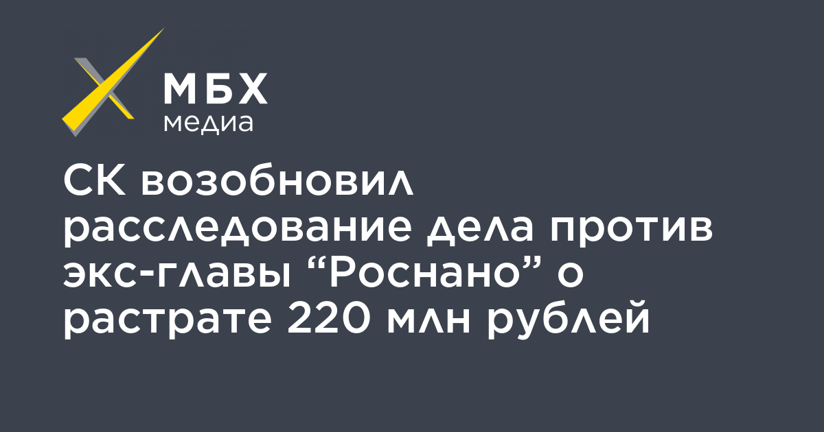 СК возобновил расследование дела против экс-главы «Роснано» о растрате 220 млн рублей