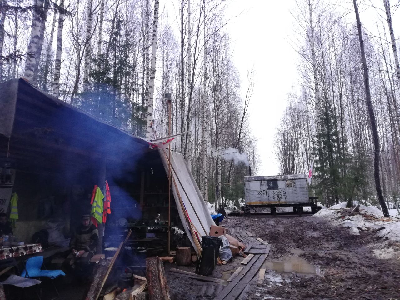 Положение здесь почти военное. «Шиес — наш Сталинград», — говорят эковолонтёры. Они отстаивают этот участок земли всеми законными способами — фиксируют нарушения и пишут заявления в полицию против стройки. На Шиесе пять блок-постов для охраны территории от бензовозов. На посту днем и ночью дежурит минимум два человека.