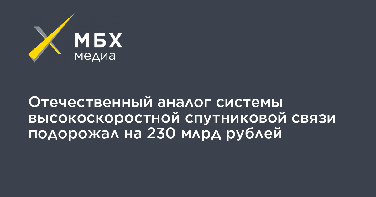 Отечественный аналог системы высокоскоростной спутниковой связи подорожал на 230 млрд рублей