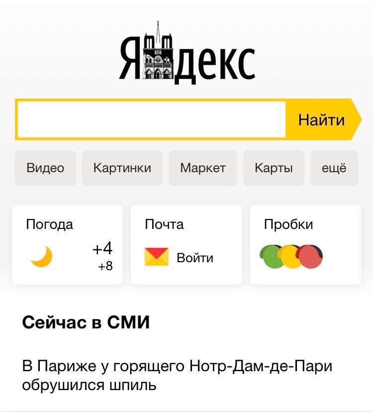 Главная страница «Яндекса».