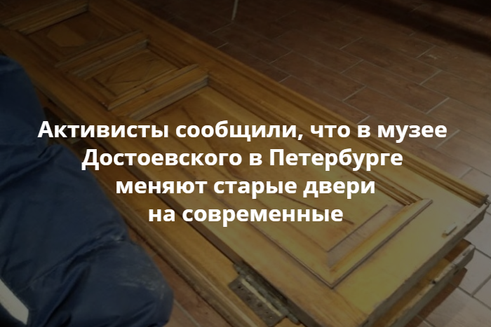 Активисты движения «Центральный район за комфортную среду обитания» сообщили в группе во «ВКонтакте» о том, что в музее Достоевского в Кузнечном переулке старые двери меняют на современные.