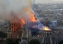 Собор загорелся в понедельник около 18:50. Час спустя обрушился шпиль, рухнула кровля.