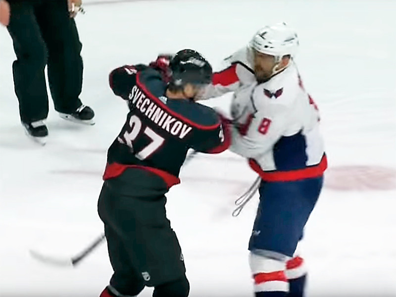 Российский нападающий "Каролины Харрикейнз" Андрей Свечников подрался со своим именитым соотечественником, капитаном "Вашингтон Кэпиталз" Александром Овечкиным в матче 1/8 финала плей-офф Национальной хоккейной лиги (НХЛ).