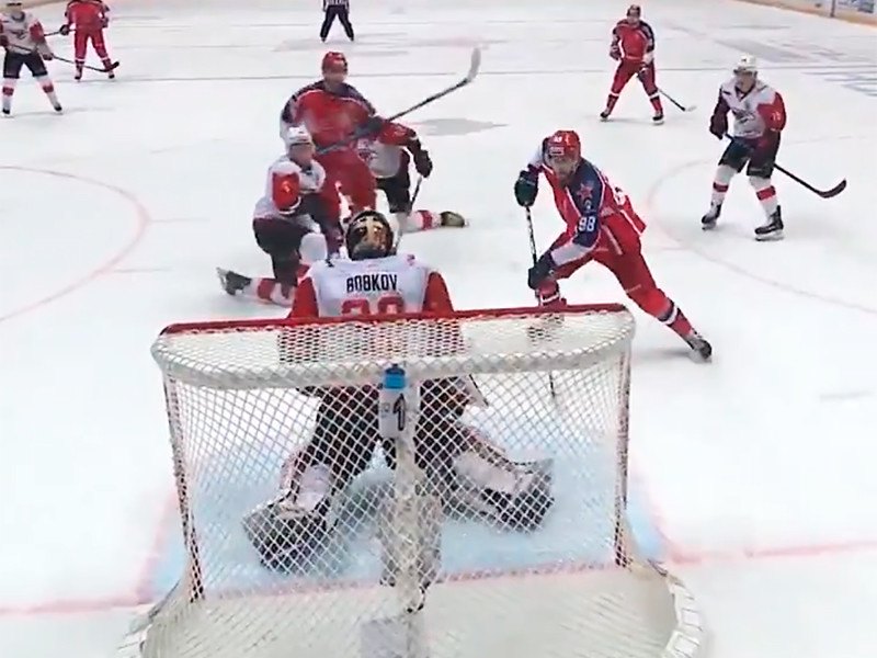 Вторую и третью шайбу москвичи провели в пустые ворота, когда соперник, стремясь отыграться, поменял вратаря на шестого полевого игрока.