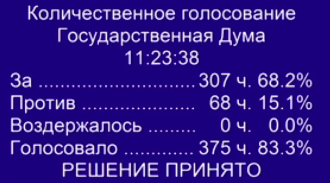 «Единая Россия» голосовала единогласно (спикер Госдумы Вячеслав Володин смог отдать свой голос за нее, даже находясь в Саратовской области) — парламентская оппозиция, за редким исключением, выступила против.