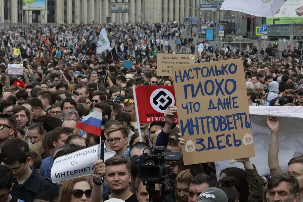 Государственная дума приняла 16 апреля в третьем, окончательном чтении законопроект об «обеспечении безопасного и устойчивого функционирования» интернета в России, известный как закон о «суверенном интернете». В этот же день ровно год назад Роскомнадзор начал блокировку мессенджера Telegram за отказ предоставить российским спецслужбам ключи шифрования. Глава Роскомнадзора Александр Жаров успел сравнить новый закон о Рунете с ядерным оружием: «Это достаточно серьезное оружие, но я надеюсь, что как ядерное оружие, которое имеется у ряда стран, оно будет находиться в спящем состоянии». Разрастающиеся полномочия Жарова могут быть оспорены Минкомсвязью.
