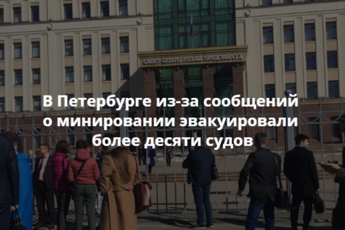 Телеграм-канал пресс-службы судов сообщает, что эвакуированы Колпинский, Московский, Кронштадтский а также Санкт-Петербургский городской суд и Ленинский суд.