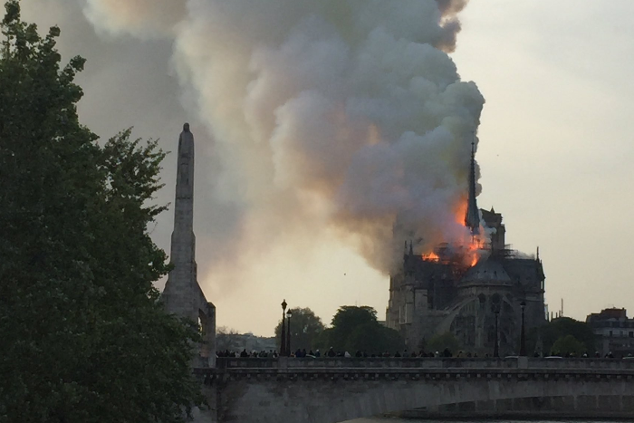 Предположительно, пожар в соборе начался во время реставрационных работ. Следователи уже допросили строителей. В результате возгорания обрушились шпиль и кровля. Пожарным удалось спасти фасад и две основные башни собора. Президент Франции Эммануэль Макрон заявил, что будет открыт национальный сбор пожертвований на реставрацию храма. Семья французских бизнесменов Пино уже выделила 100 миллионов евро.