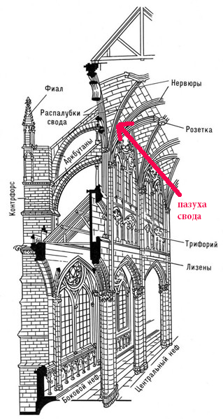 В готике зодчие совершили гениальный прорыв, повторить который сумели только архитекторы второй половины XIX в. — они поняли, что нагрузки можно не «размазывать», не распределять по массиву стен, а собрать в узлы, частично взаимно погасив, а усиливать нужно только узлы. Так родился готический свод — одно из самых дерзновенных творений человеческого гения