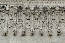 И, наконец, последнее. О чём невозможно не сказать, живя в России. Собор Notre Dame de Paris — потрясающий пример того, как идеи разных, далеких друг от друга стран обогащают, «окормляют» друг друга. В 1197 г. в далеком от Парижа Владимире на Клязьме западные (то ли французские, то ли бургундские) мастера закончили возведение Дмитриевского собора. В аркатуре которого они воплотили идеи русских заказчиков — Всеволода Большое Гнездо и его соратников: поместив в аркатуру вместо уже традиционных росписей практически трехмерные фигуры ветхозаветных пророков и христианских святых. (Рис. 6.) Закончив постройку, артель отправилась на родину, на Запад. Чтобы спустя пару лет эти же мастера (почти наверняка эти же самые) воспроизвели понравившуюся им идею на западном фасаде собора Notre Dame de Paris, создав первую в западной архитектуре «галерею королей», ставшую визитной карточкой всей французской готики. (Рис. 7.)
