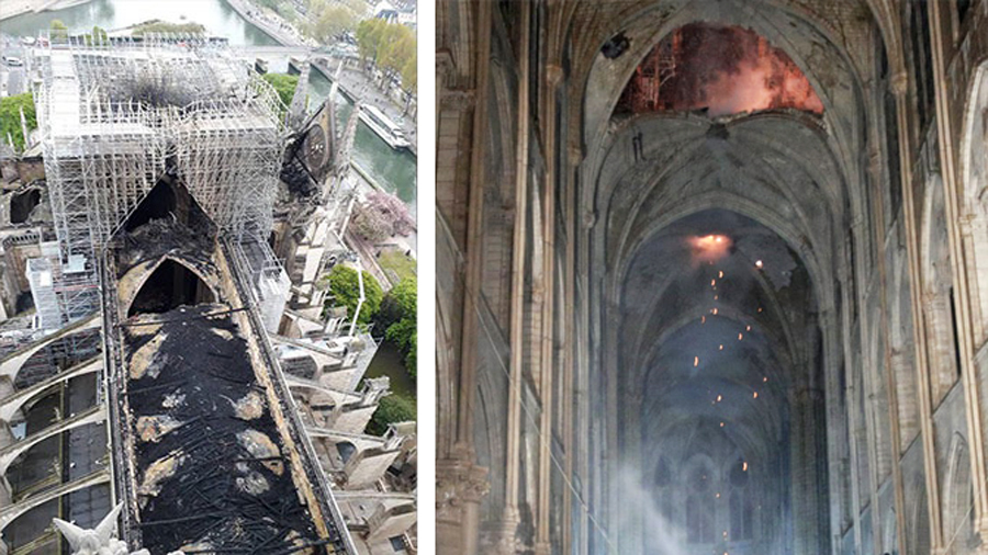 Каковы же на сегодня утраты? Утрачен безвозвратно шпиль собора и вся его кровля (стропила и свинцовое покрытие). Обрушены три участка свода. Всем понятно, что их придется восстанавливать. Что непонятно непрофессионалам — это то, что почти наверняка придется разбирать и заново выкладывать все своды основного нефа и трансепта собора. Почему? Потому что камень сводов после обрушения на них горящих стропил и расплавленного свинца перекалился, в нем возникло множество микротрещин, которые невозможно никак проинъектировать, «склеить». Иными словами, своды утратили несущую способность и могут рухнуть в любой момент просто из-за разрушения материала. Плюс к тому, выгорел раствор забутовки пазух — их заполнение тоже придется перебирать. Всё это очень трудоёмкие и очень небыстрые и опасные работы — надеяться, что их удастся сделать в год-два — это не понимать их сложность и рискованность. Наконец, предстоит еще выяснить, в каком состоянии парапеты выше сводов, на которые опирались стропила кровли: можно ли их нагружать новой кровлей или придется подводить дополнительную скрытую конструкцию, оставляя их как чисто художественный элемент.