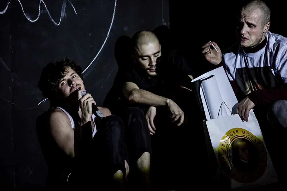 жесткие страсти неприкаянной молодой тусовки, «ползающей» по планшету сцены, отражаются в огромном зеркале над ней, приобретая красоту и значительность.