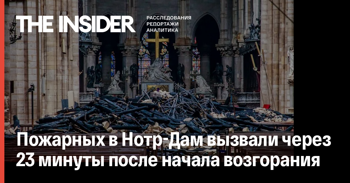 Спасатели были извещены о пожаре в соборе Парижской Богоматери только через 23 минуты после сработавшей сигнализации. Об этом сообщает BuzzFeed со ссылкой на прокурора Парижа Реми Хейца, расследующего причины пожара.