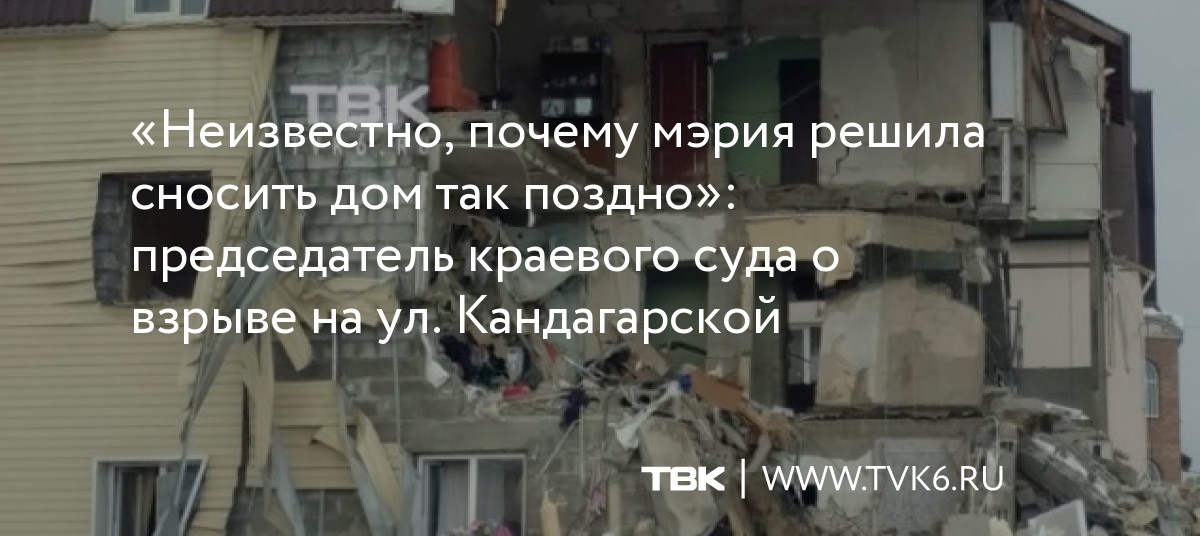 «Неизвестно, почему мэрия решила сносить дом так поздно»: председатель краевого суда о взрыве на ул. Кандагарской