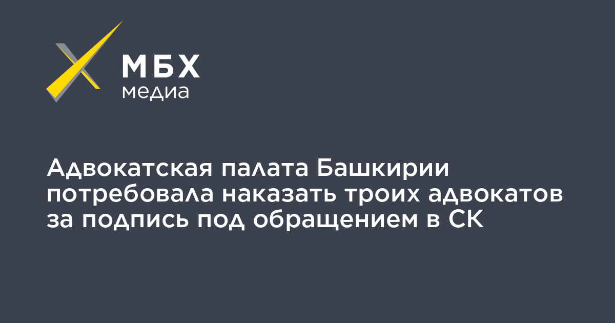Адвокатская палата Башкортостана направила письмо в Федеральную палату адвокатов с требованием привлечь к ответственности вплоть до лишения статуса адвокатов Алексея Аванесяна, Михаила Беньяша и Сергея Крайних. Об этом Аванесян сообщил «МБХ медиа».