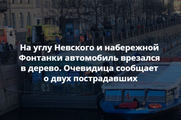Днем 18 апреля, около 16:30, на углу Невского проспекта и набережной реки Фонтанки автомобиль сбил несколько пешеходов. Об этом «Бумаге» сообщила очевидица Алина Гараева.