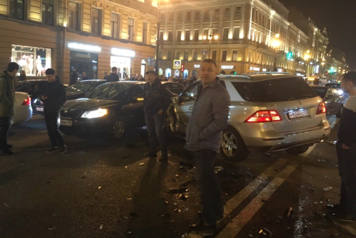 На Невском проспекте вечером 17 апреля произошло ДТП с участием шести автомобилей. Об этом сообщили очевидцы в группе «ДТП и ЧП».
