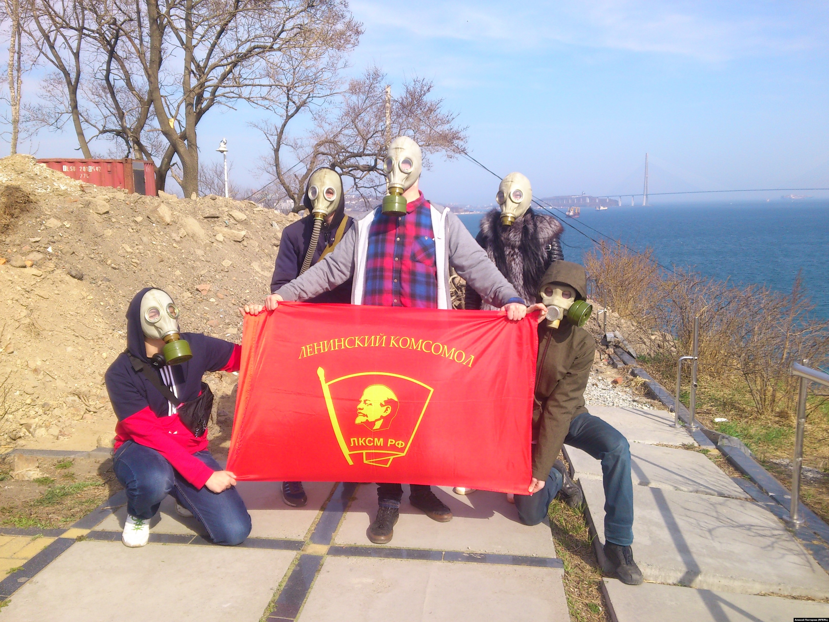 Жители Владивостока провели флешмоб в защиту экологии. Активисты надели противогазы и устроили импровизированную фотосессию в районах, где ведётся открытая перевалка угля, сообщил корреспондент "Сибирь.Реалии".