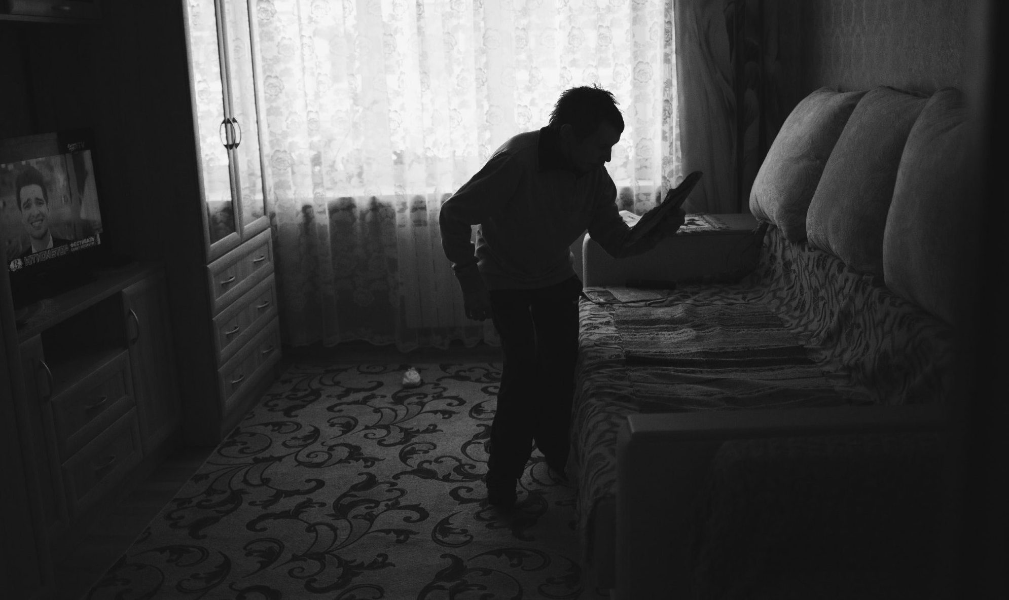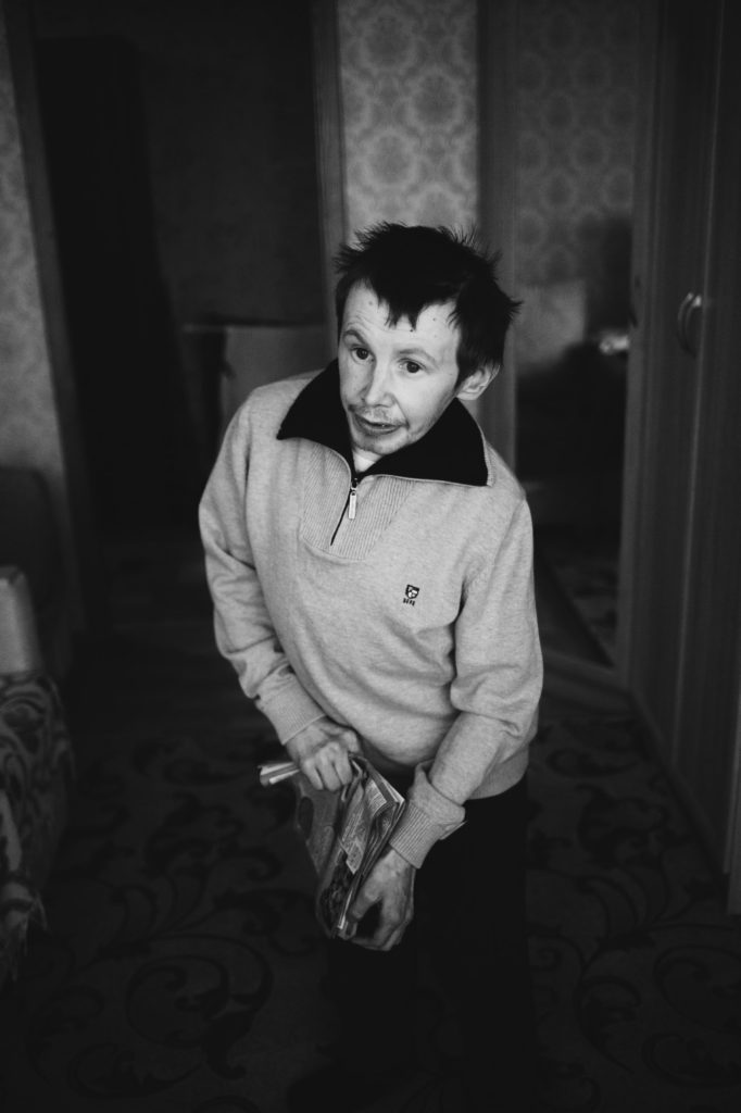 В свои 36 лет Паша может ненадолго оставаться один. Сам надевает трусы, штаны и носки. Сам раздевается. Еще он знает, где дома лежит хлеб. Больше всего Паша любит черный хлеб. Но из-за остеопороза у Паши почти не осталось зубов. «Кальций вымывается, лечить бесполезно. Вставить новые я не против, но он не выдержит столько наркозов. И я ему всю еду делаю мягкую, мелко-мелко нарезаю. Сыночек, хочешь чаю?»