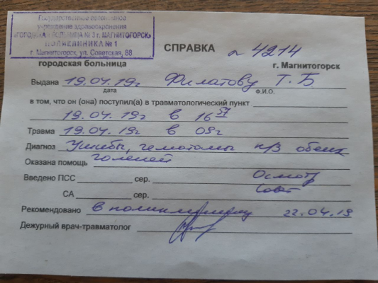 Когда меня отпустили, я поехал в травмпункт. Человек, который бил меня по плечам, он же пинал по ногам: левая нога с голенища в синяках, правой тоже досталось. В травмпункте я зафиксировал этот момент. В ближайшее время я свяжусь с Фондом борьбы с коррупцией, либо найду адвоката, и мы напишем заявление.