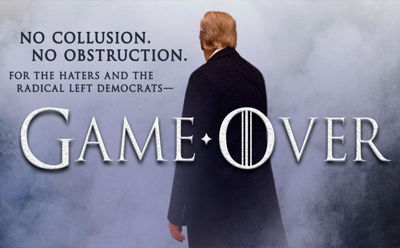 Опубликована публичная версия доклада спецпрокурора Мюллера о вмешательстве Москвы в американские выборы. Из него следует, что ни один американец не состоял в сговоре с российскими властями во время избирательной кампании 2016 года. Дональд Трамп ответил на публикацию мемом по мотивам «Игры престолов».