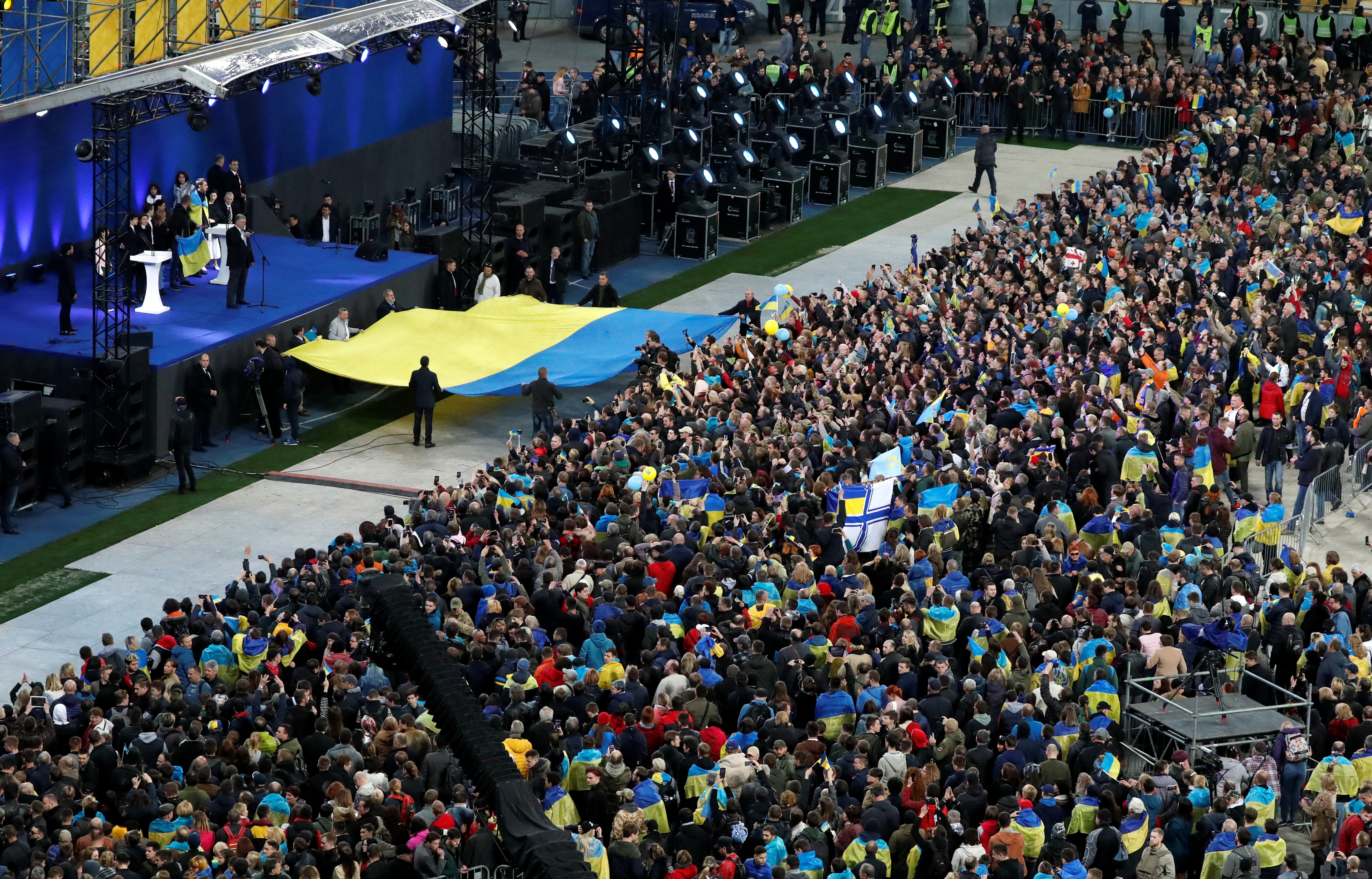 В Киеве прошли стадионные дебаты Порошенко и Зеленского
