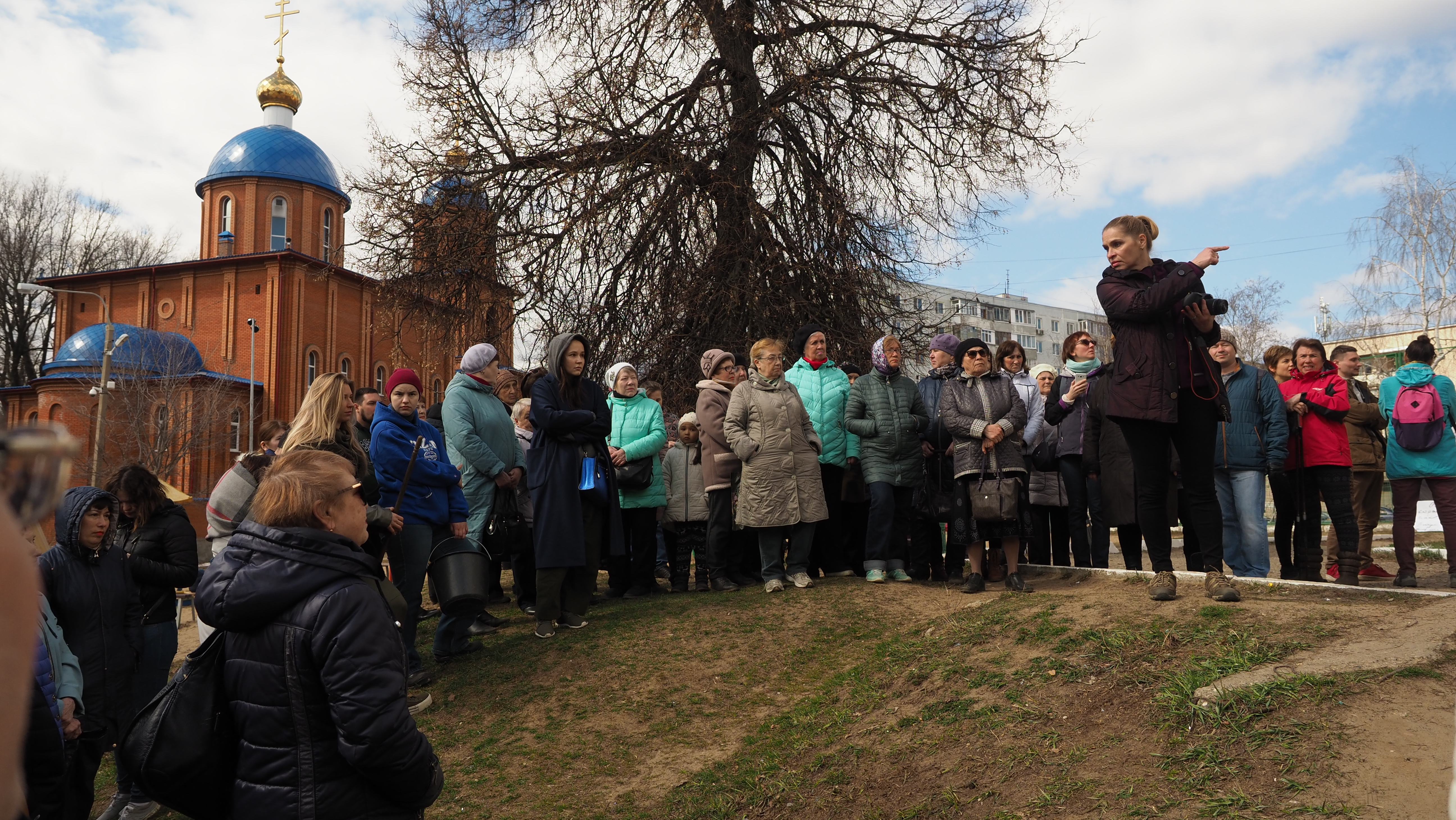 — Просили несколько раз, прибегал священник, попросил — музыка не убавлялась! Ведущий как будто на костях скакал, — описывает происходившее еще одна местная активистка, Лиана Михалева. — Их [организаторов субботника] это не трогало — музыка не убавлялась. Шел как... пир на костях! Они уже свою вакханалию проорали за час, и у них начались опять "Ай-гей-ге-ге-гей!" — вот всякая ерунда... Он бы мог спокойно замолчать, говорить потише, но он не убавил ни на йоту звук. Был такой момент вопиющий, когда состоялся вынос — а внос и вынос колоколами оповещаются, это можно понять — я сказала: "Звучат колокола, пожалуйста, убавьте громкость". И он [ведущий] начал в этот момент конкурс "Кто громче посмеется". Он включил какой-то смех и начал просить, "А кто переорёт?"