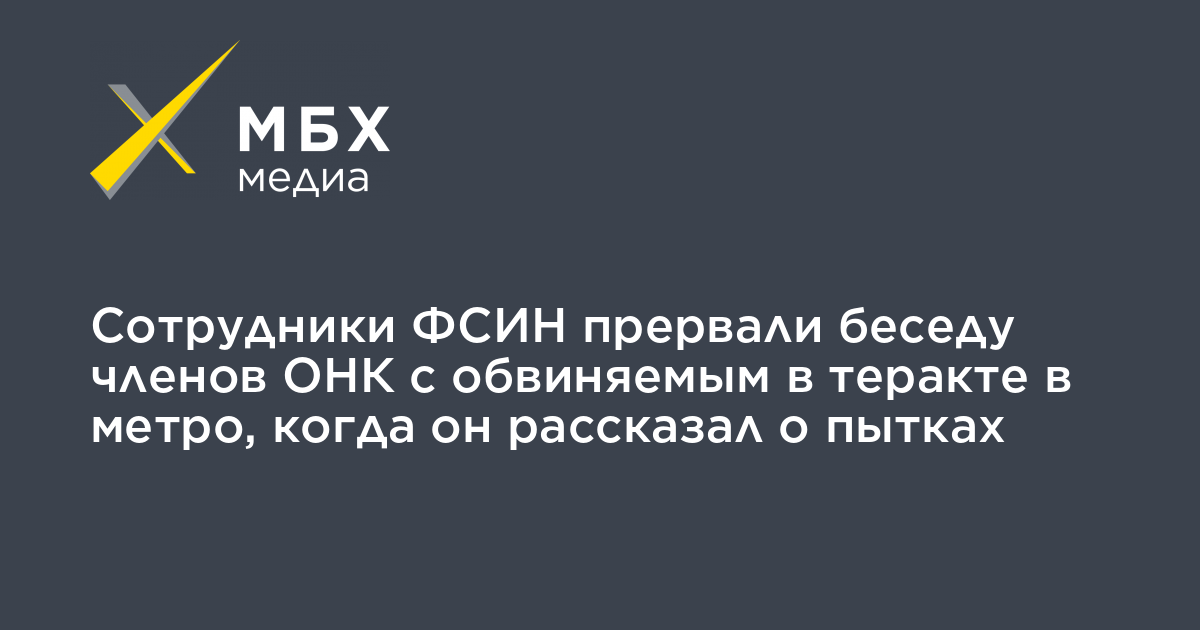 Сотрудники СИЗО-1 Санкт-Петербурга прервали беседу членов местной Общественной наблюдательной комиссии (ОНК) с обвиняемым в теракте в городском метро Аброром Азимовым, когда он начал рассказывать о том, как его пытали. Об этом сообщила «МБХ медиа» член ОНК по Санкт-Петербургу Яна Теплицкая.