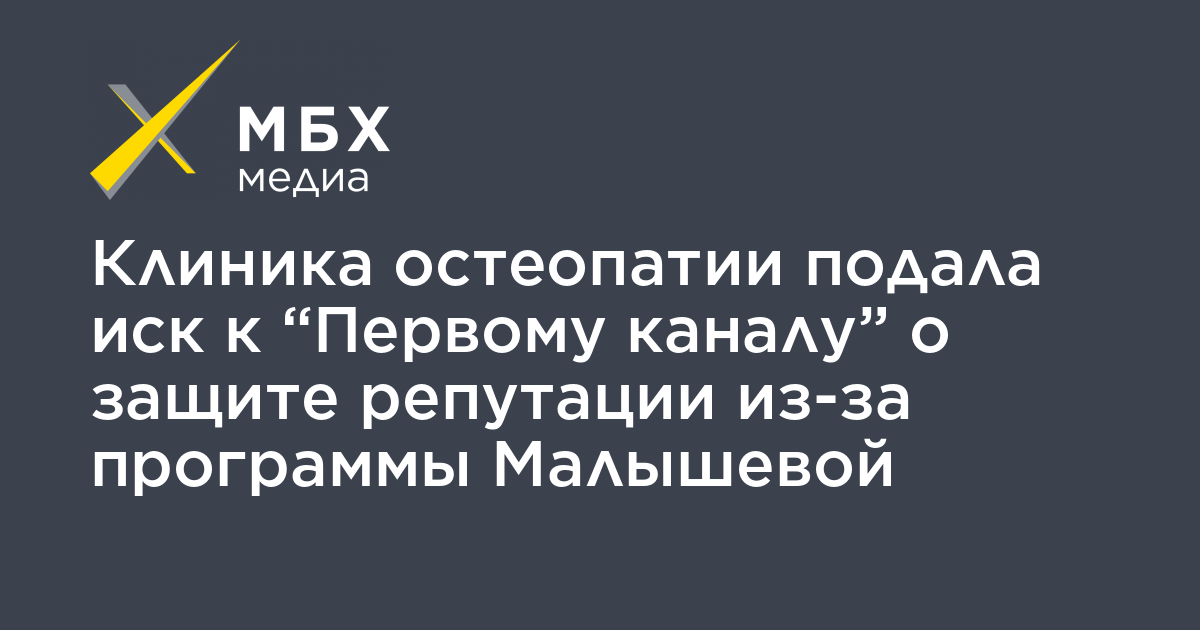 Московская клиника остеопатии «Остеосфера» (ООО «АЙЯ ПАЧНА») подала иск к «Первому каналу» о защите деловой репутации из-за программы Елены Малышевой. Об этом «МБХ медиа» рассказал глава клиники Иван Харабара.